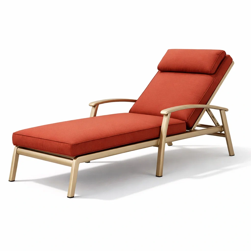 Chaise longue en aluminium avec tissu polyester rouge